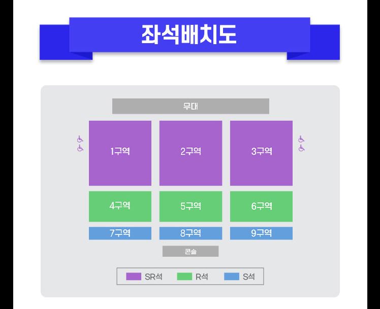 이번 콘서트는 SR석, R석, S석으로 구분되어 있으며, 각 좌석의 가격은 다음과 같습니다.