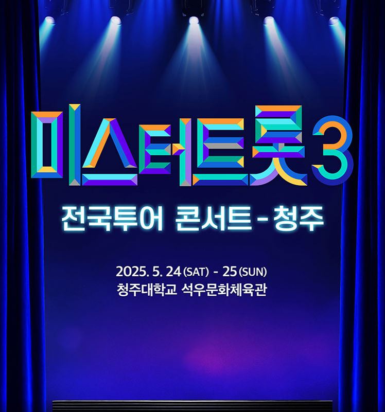 〈미스터트롯3〉 전국투어 콘서트 청주 공연은 2025년 5월 24일(토)과 25일(일), 이틀간 진행됩니다. 장소는 청주대학교 석우문화체육관으로, 트로트 감성에 최적화된 실내 공연장입니다.