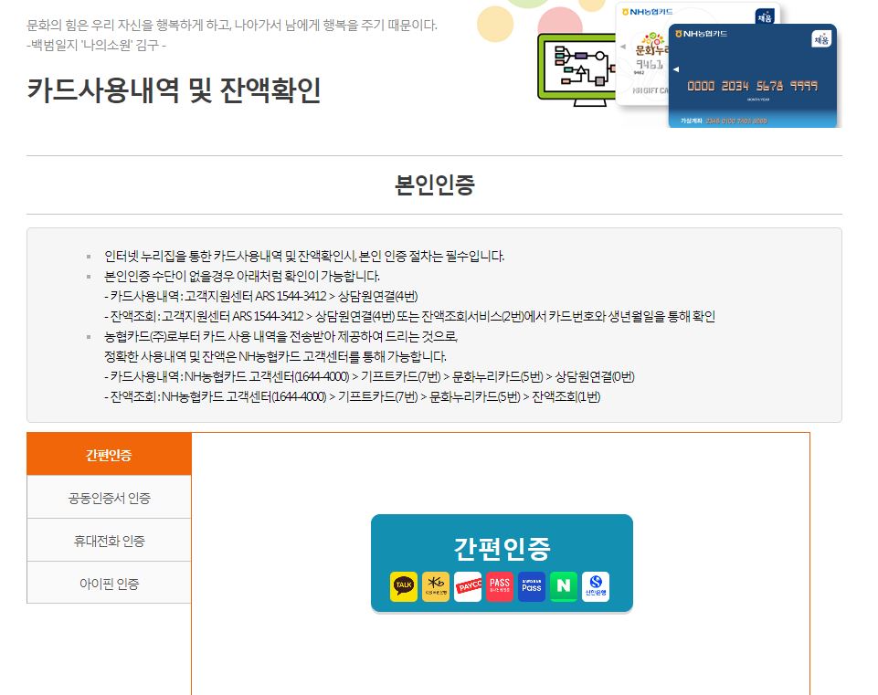NH농협카드 고객센터: 7번(기프트카드) → 5번(문화누리카드) → 1번(잔액조회)