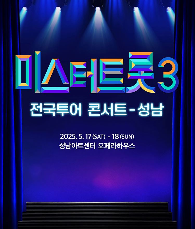 《미스터트롯3》 전국투어 콘서트 성남 공연은 2025년 5월 17일(토)과 18일(일), 단 이틀간 진행됩니다.