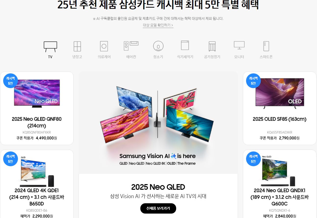 | 대상 모델 구매 | 최대 5만원 캐시백 | 제품군별 차등 적용 |