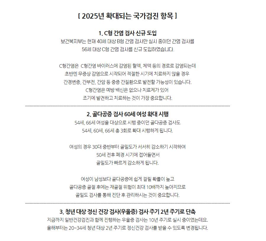 2025년부터 달라진 무료 건강검진 항목, 여러분은 확인하셨나요?